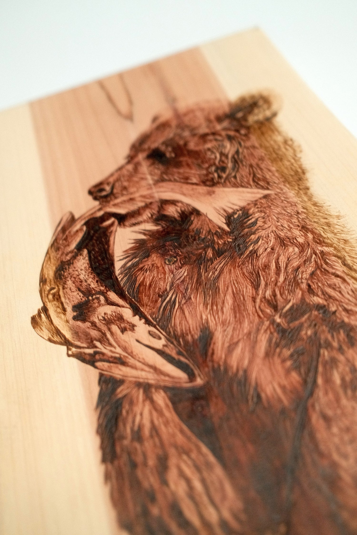 These original works have found homes with collectors. They stand within the continuing story of intentional design, natural materials, and fine pyrographic artistry.