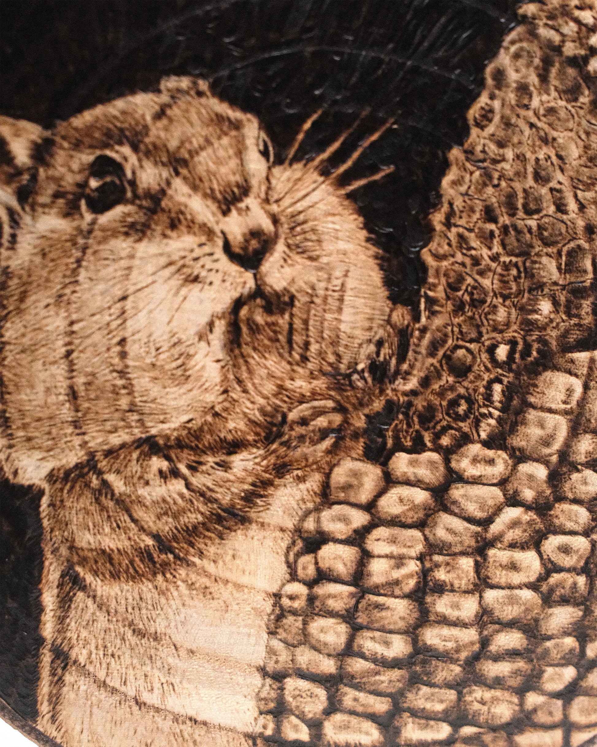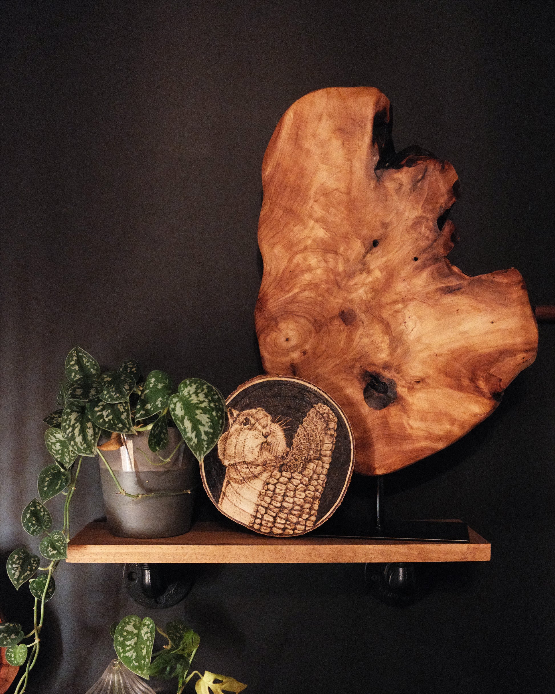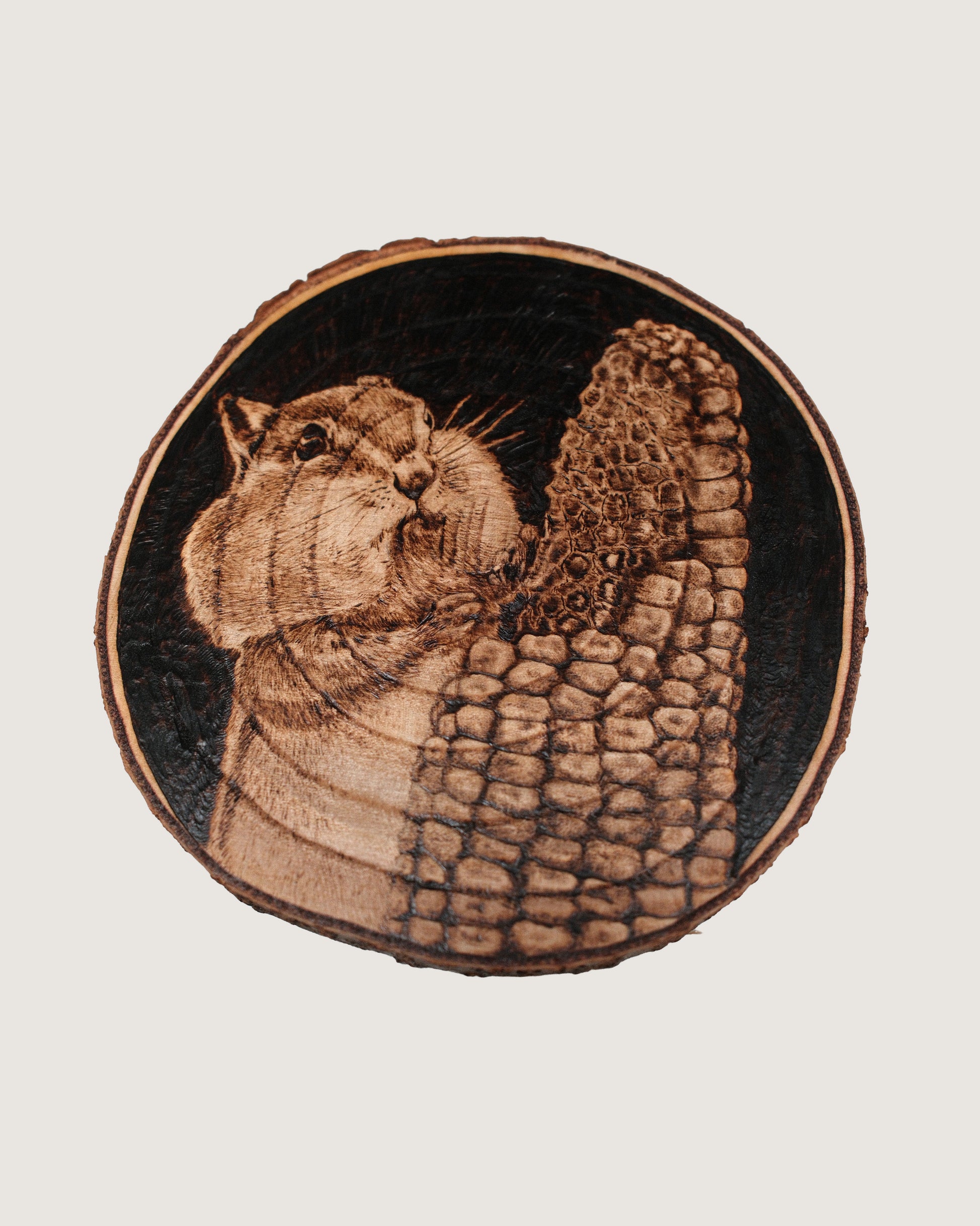 Kernel Instinct is an original pyrography piece created by Ray Smith in 2025. Burned by hand on Live-Edge Basswood, its textures capture the natural grain of the wood, transforming it into a lasting work of fine art.