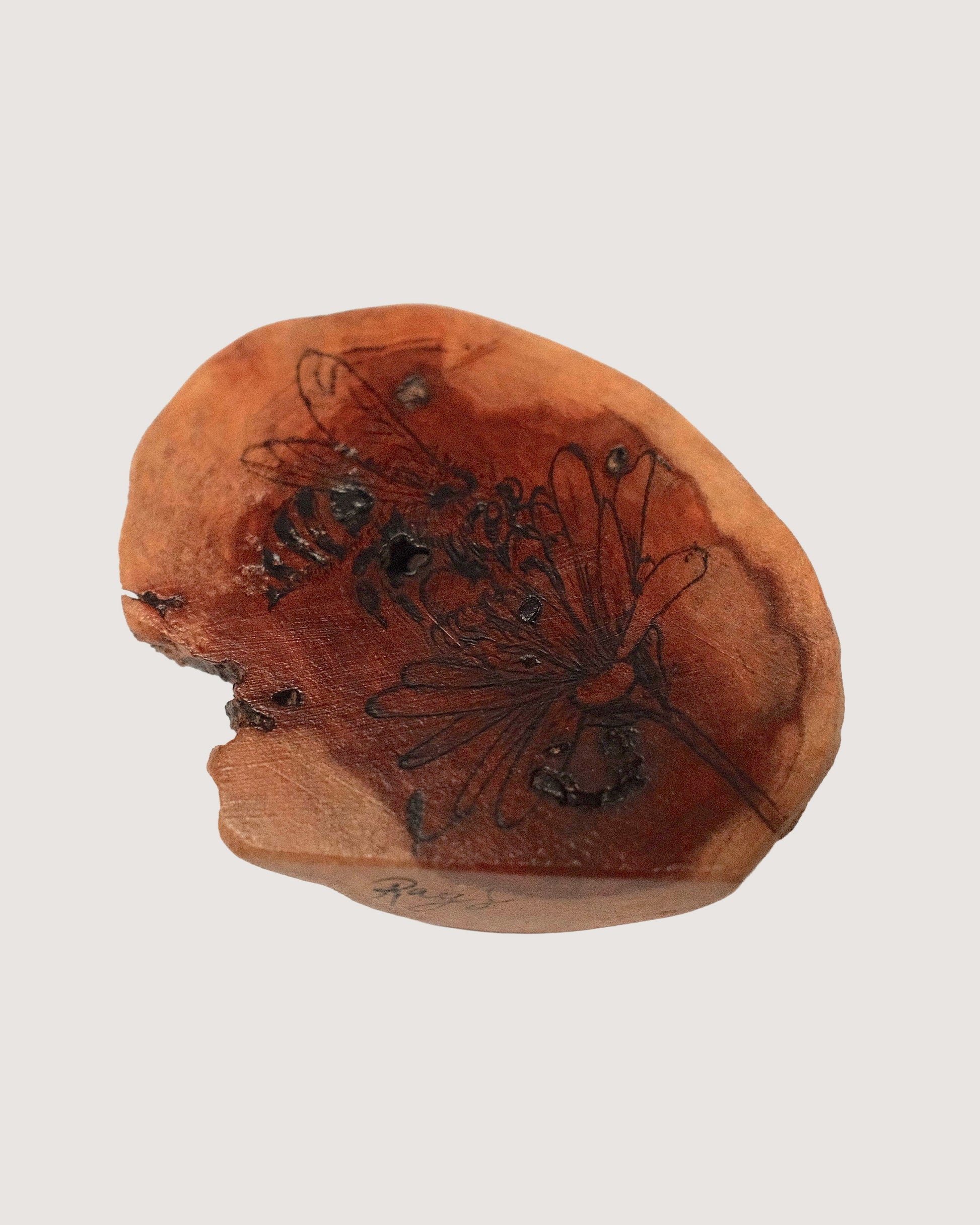 A one-of-a-kind pyrography artwork by Rachel Smith, hand-burned on Red Malle Burl. Signed, dated, and accompanied by a certificate of authenticity.